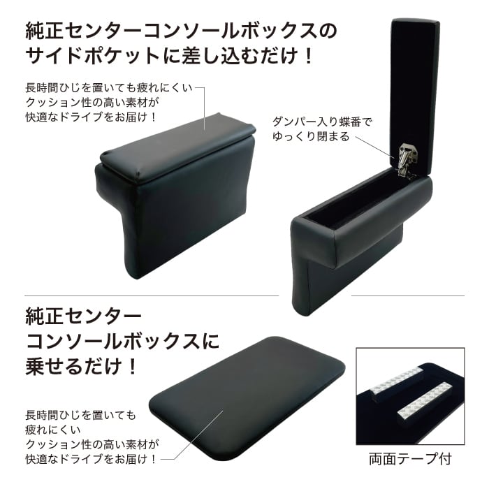 ・純正コンソールボックスに乗せるだけ!左右のアームレストと高さを合わせているのでゆったり肘を置くことができます!