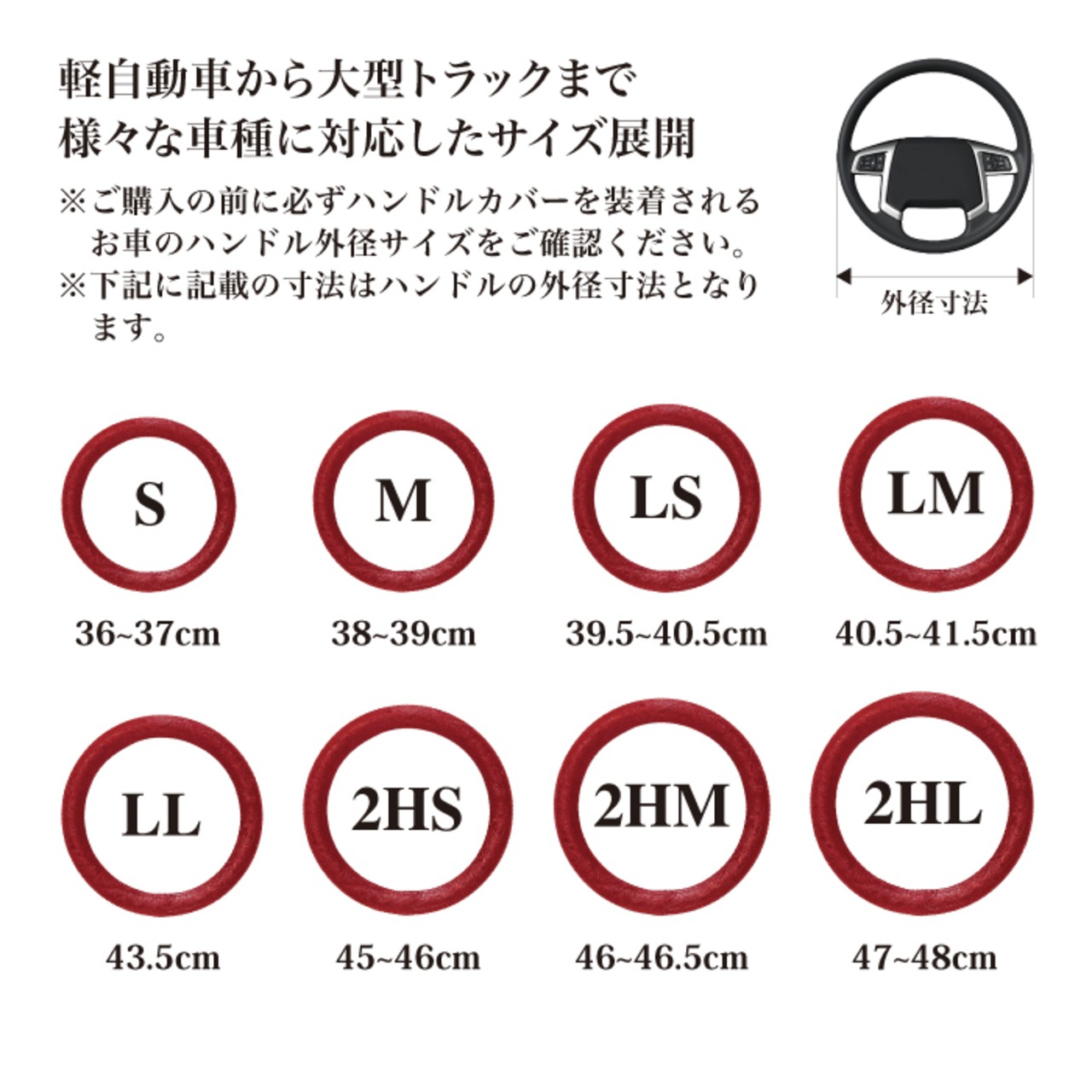 ☆必ずお車のハンドルサイズ(ハンドル外径)を測定しご確認の上ご購入ください。